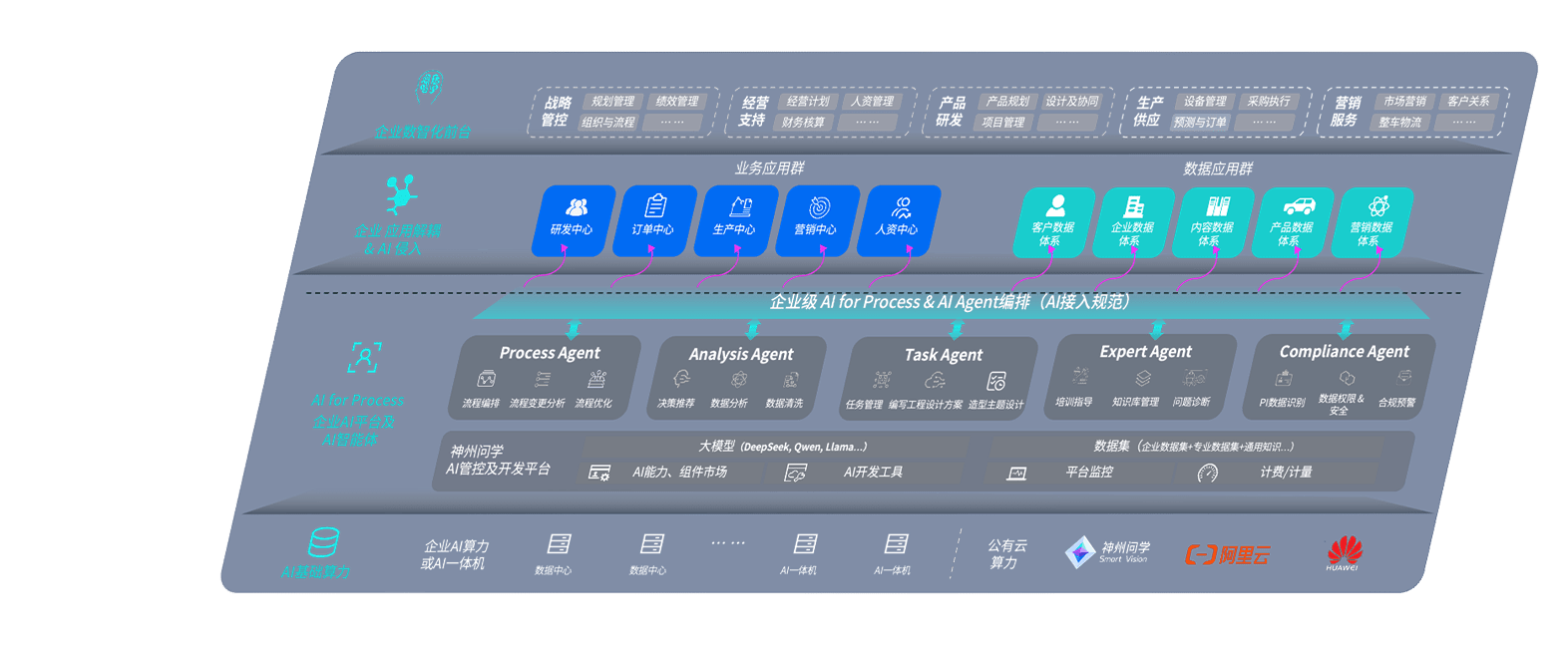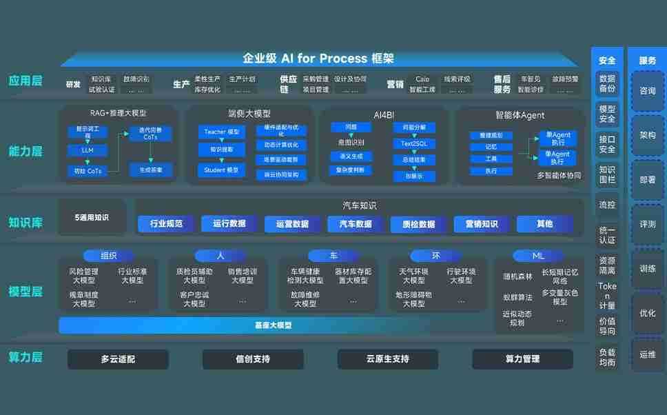 端到端的一站式AI工作空间深度融合了从企业战略规划到日常经营的全流程业务板块,,,,定向解决车企内部领域多、、、、部门多、、链条长、、、、场景碎片化等难题,,,支持车企快速构建以AI为核心的生产力写作体系,,,实现任务执行与AI能力的无缝集成与交互